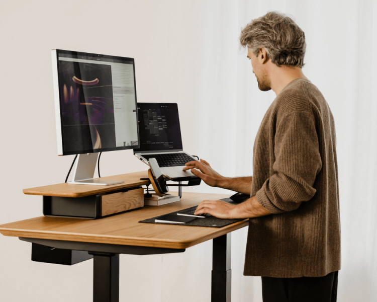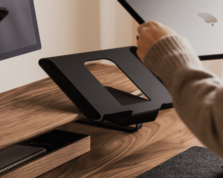 Vervaardigd uit duurzaam staal en afgewerkt met natuurlijk vilt en Portugees kurk, biedt deze laptopstandaard stabiliteit, comfort en een strakke, minimalistische uitstraling. Een praktische upgrade voor ergonomische, opgeruimde werkplekken.
