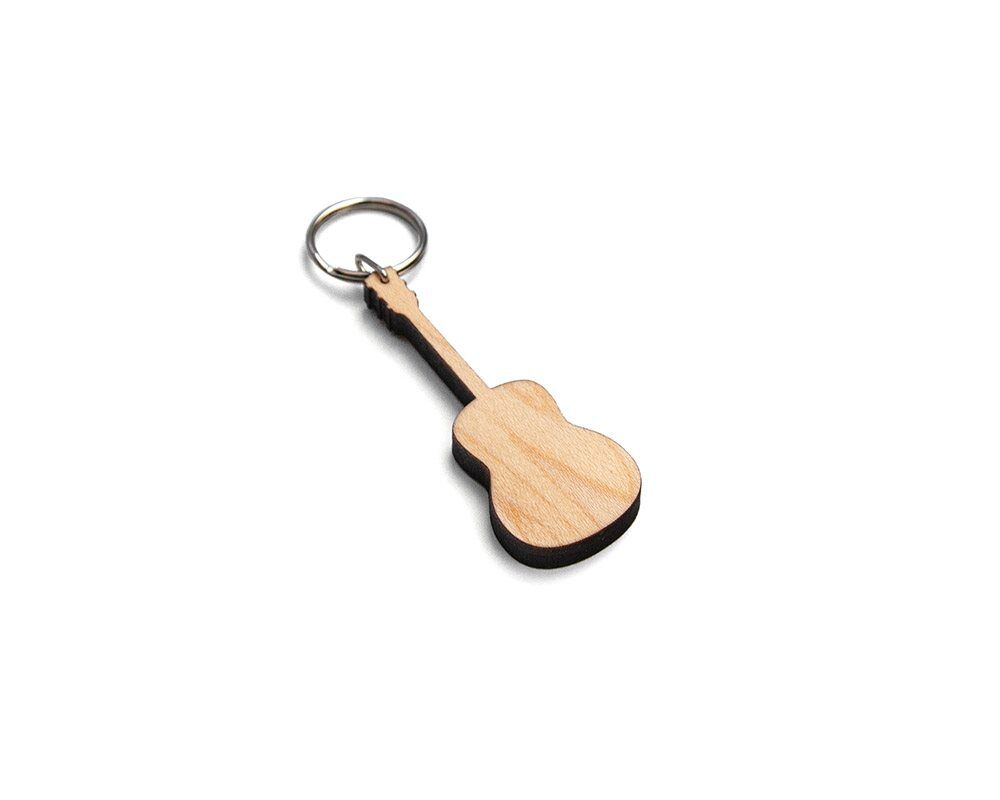 The stunning Guitar wooden keychain is the perfect little gadget for music enthusiasts and guitarists! Completely crafted by hand from natural maple wood which gives it a soft and pleasant feel. Use this quality accessory as decoration in your home or office or chain them onto your guitar case.